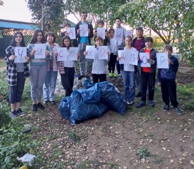 Ребята навели чистоту на прилегающей территории, убрав мусор и сухостой. Затем прошло экологическое мероприятие по изучению видов растений.