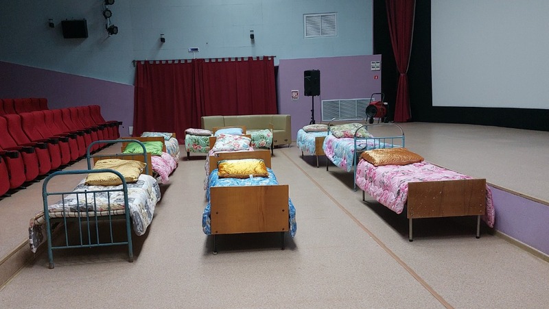На базе киноцентра и на территории около него развернули несколько пунктов по приёму пострадавших граждан, обеспечению их питанием, в том числе горячим, вещами, временным жильём. За каждым участником учений закреплены определённые обязанности. Тренировка проводится для выполнения алгоритма действий, проверки готовности, слаженности, синхронности, результативности всех служб.