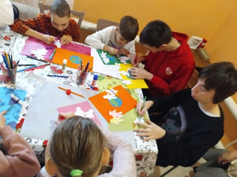 Очередную встречу в Семейной приёмной ВОРДИ (Всероссийская организация родителей детей-инвалидов) посвятили прошедшему Дню народного единства. Ребятам рассказали о празднике, о дружбе народов и предложили поучаствовать в мастер-классе. Все вместе изготовили открытки-аппликации о планете Земля, на которой проживают люди разных национальностей.