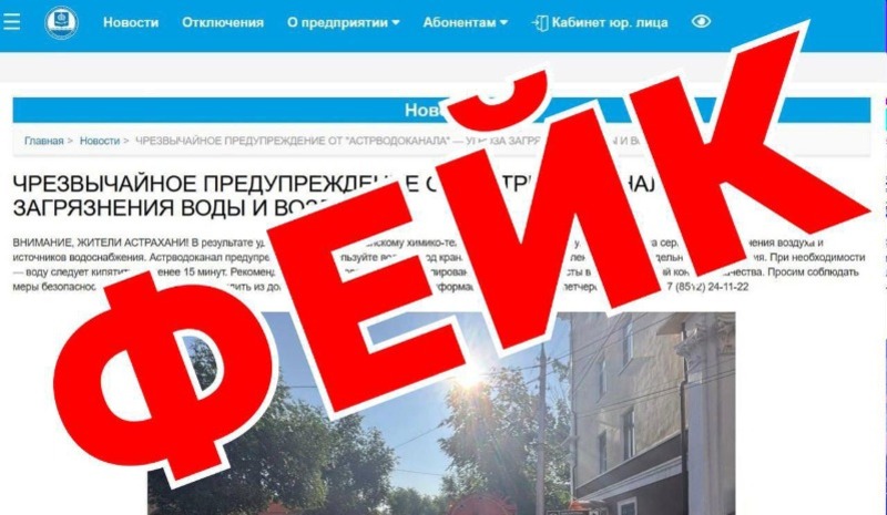 Авторство фейков приписывают сотрудникам МУП «Астрводоканал» и администрации города Астрахань. В Астраханской области не существует химико-технологического завода, о чем знают все жители региона.